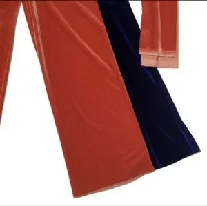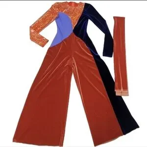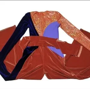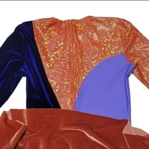 - Patchwork with Metallic Burnt Orange, Light Blue Velour, Electric Blue Velour and Burnt Orange Velour in a Very Stretchy Fabric