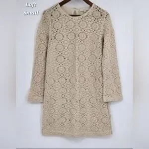 Chic long sleeve lace dress by LOFT. Cream color with intricate lace pattern. Perfect for elegant occasions.