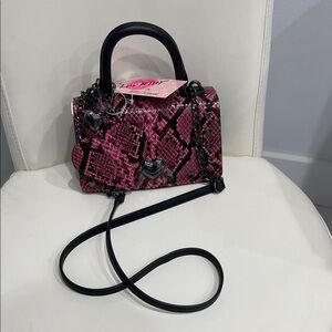 NWT Betsey Johnson Pink & Black "Snakeskin" Crossbody Bag with Heart Charm
