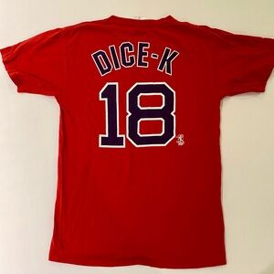 Show your team spirit with this vibrant Dice-K Red Sox T-shirt. Perfect for any fan, this red shirt is a must-have for game day.