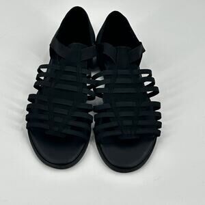 NWOT Eileen Fisher Rato Honey Leather Sandals 7.5 Flats Fisherman Black Travel