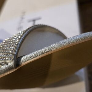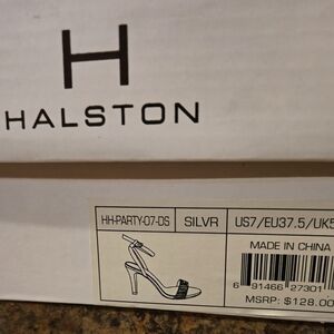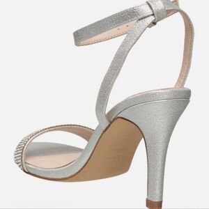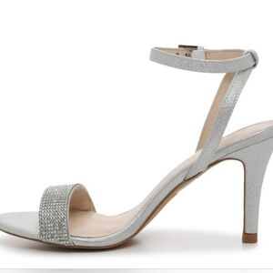 H by Halston Ankle Strap Party Bling High Heel Dress Sandal, Silver, NEW