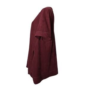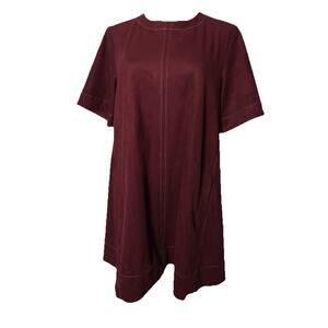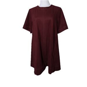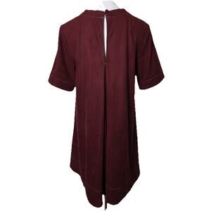 Maeve The Emmy Faux Suede Short Sleeve Mini Swing Dress In Burgundy Size S