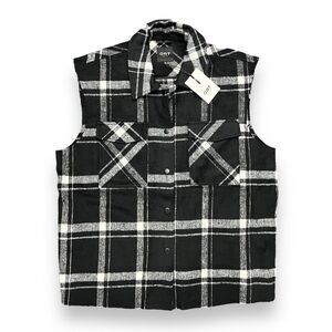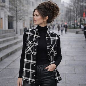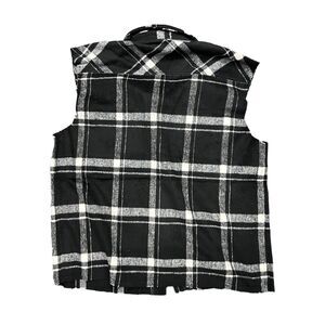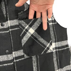 plaid vest, wool blend vest, snap front vest, sleeveless jacket, layering piece, shacket vest, fall layering, winter layering, spring transitional, cozy cabin, weekend casual, western vibe, grunge inspired, 90s style, streetwear, minimalist, city chic, casual chic, outdoorsy, festival outfit, flannel look, black white check, womens medium