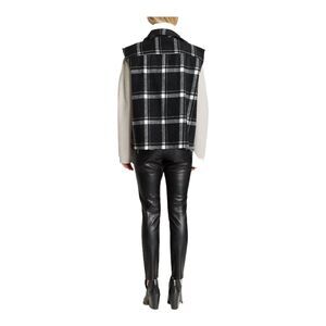Classic black + white plaid vest in a cozy wool-blend fabric. An easy layering piece you can wear open over tanks, tees, or fitted long sleeves for an effortless cold-to-warm transition look.
