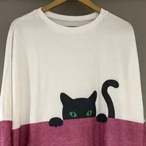Add a playful touch to your everyday wardrobe with this adorable cat-themed colorblock tunic πββ¬π Featuring a peekaboo black cat graphic with bright green eyes, this top is the perfect mix of cozy, cute, and conversation-starting style.