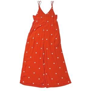 Free People Dream Big Polka Dot Jumpsuit Small Red Wide Leg Flowy Boho