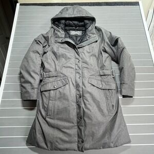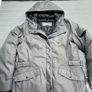 Eddie Bauer WeatherEdge Gray Herringbone Down Parka Hooded Winter Coat Womens L