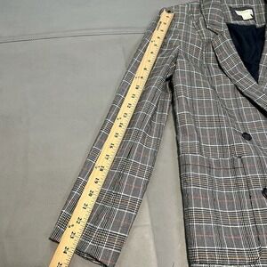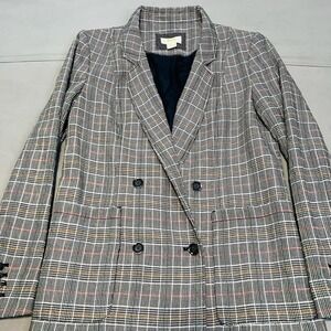Anthropologie Maeve Lilith Plaid Oversize Gray Academia Double Breast Blazer3921