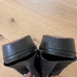I have loved wearing these but it’s time to move on. They are incredibly well made and have lasted great!! There is no flex to the sole, it’s all solid wood with a leather sole but they also have an adjustable side trap and elasticated inserts for comfort while moving. Buttery soft leather. See photos for condition.