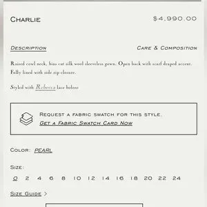Brand new Charlie dress by Danielle Frankel. Bought for my civil ceremony but now wearing something else. In perfect condition. Size 2 bridal. Can fit 00-2.