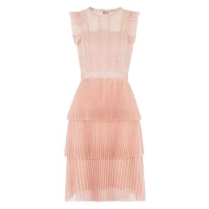 Heartloom Lace Tiered Dress Dusty Rose Pink XS 0 2
