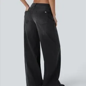 Asymmetric low rise Wide Leg Charcoal Black Women's Jeans