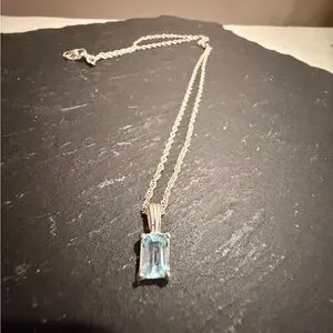 Silver Necklace with Aquamarine Gemstone