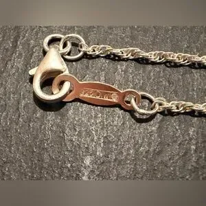 Both the pendant and chain are stamped 925 MC, confirming solid sterling silver and a matching set from the same maker—not a mixed piece.