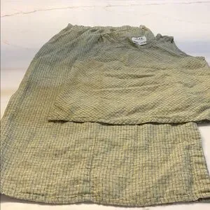 Flax 100% linen Yellow and Blue Plaid Skirt set Small ( top and skirt)