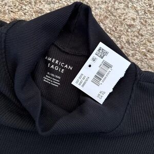 NWT American Eagle Thermal Waffle Weave Black Mock Neck Long Sleeve Top Size XL