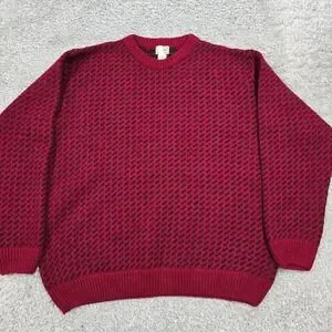 L.L. Bean men's wool sweater in red with a classic birdseye knit pattern, designed with a heavyweight construction, ideal for cold weather layering and heritage-style wear.