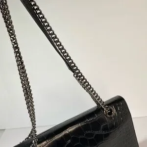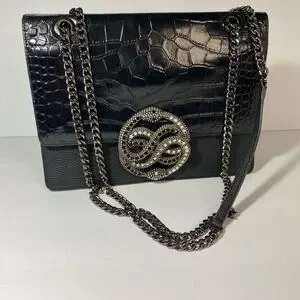 Anne Fontaine NWOT is an elegant croc embossed with 2 serpents intertwining in a gunmetal and silver on front. Straps allow for multiple ways to wear. Comes with dustbag.