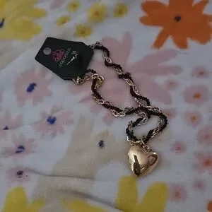 Chic necklace featuring a gold heart pendant. Stylish black and gold chain design. Perfect for any occasion.