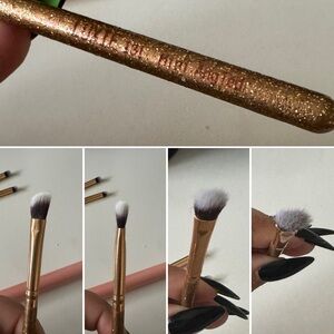 Soft synthetic bristles for smooth, even application. Rose gold ferrules with pink and glitter handles. Ideal for foundation, blending, shading, and detail work. Great starter set or addition to any makeup collection.