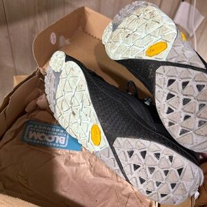 Breathable black hiking from Merrell. Silver-tone detail on the tongue. Lace-up closure for secure fit. Padded collar and insole for comfort. Barefoot trail glove 6 hardly worn women’s size 7.5