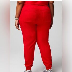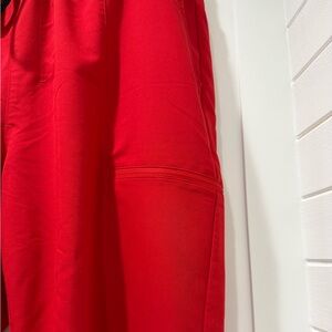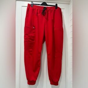 Designed for max comfort with all of your essential pockets in mind. The Signature Stay-Put Waistband allows for a full range of motion, thanks to its elastic ribbing + adjustable drawcord security combo. These are the only scrub joggers you'll ever need. Fabric infused with anti-microbial tech. Two other pairs of 2x scrub pants listed if looking for multiple pairs. Color is Goji Red.