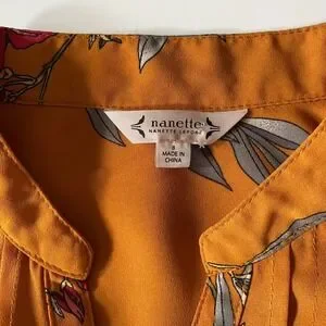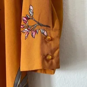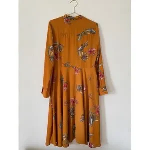 Nanette Lepore Floral Print Shirt Dress Mustard Yellow Button Front Midi Size 8