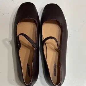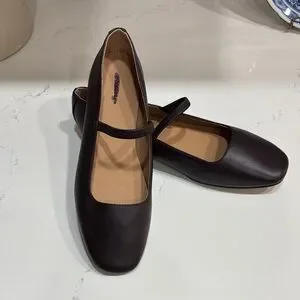 Comfortable women's Mary Jane flats in dark brown. Smooth leather upper with an elastic strap for a secure fit. Cushioned insole offers all-day comfort. Versatile dark brown color pairs with many outfits. Customer return so Madewell name is marked out to prevent return to the store. Never worn.