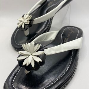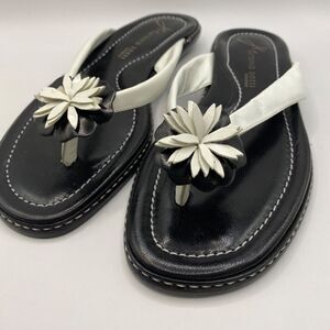 Antonio Bossi Size 8 Black White Leather Daisy Flower Sandals Size 8 NWT