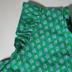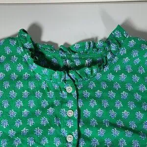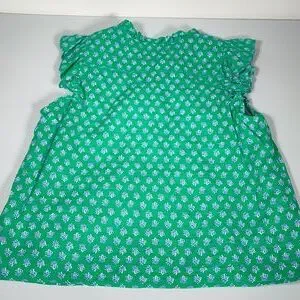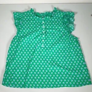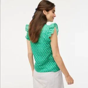 J. Crew Flutter Sleeve Top in Vintage Kelly White Floral Block Print L