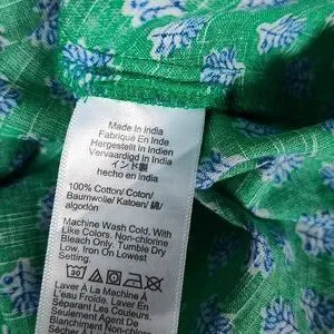 Kelly green with a white and blue stamp print