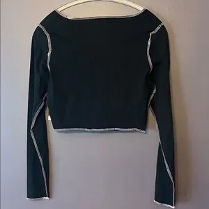 SWIXXZ Black with Pink Stitching Screen Printed Long-Sleeve Cropped LargeTop NWT