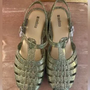 Melissa Jelly Sandals, VGUC, worn a handful of times. Green glitter color. These are surprisingly so comfy.