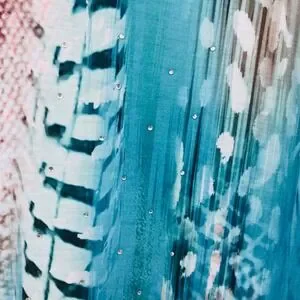 - Lightweight tunic top with a vibrant teal and blue abstract animal print.