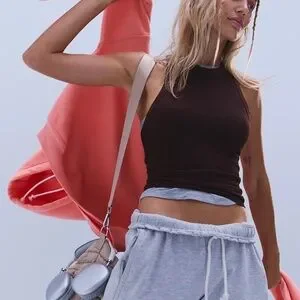 Features: Stretchy, stay-put fabrication; contrast trim detailing; high neckline; racerback topped with buti logo.