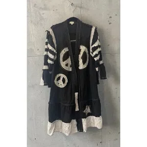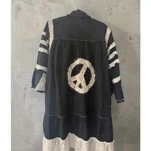 RARE POL Black & White Peace Sign Duster Jacket M Medium Women’s NWOT