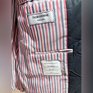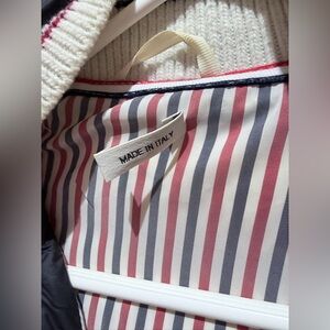 Thom Browne Black Puffer Jacket with White Stripes
