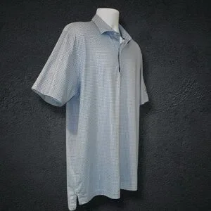 Johnnie-O Performance Golf Polo Shirt Men’s L Blue Micro Print Stretch
