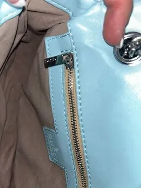 Light Blue Chevron Quilted Shoulder Bag with Silver Hardware and Dust Bag