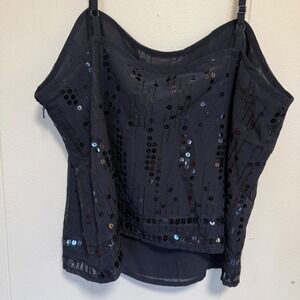 Sheer with sequins. Fully lined. Adjustable straps.