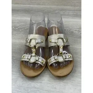 Latigo Rush Women's Sandal Silver Leather 6.5 Double Strap Buckle Boho Comfort