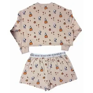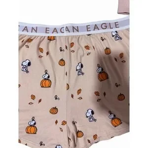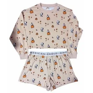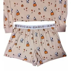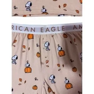American Eagle Peanuts Fall Pumpkin Snoopy Plush Pajama Set Women's Size Large
