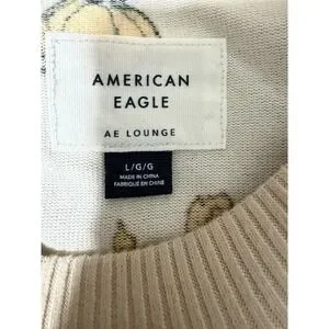 The American Eagle Peanuts Fall Pumpkin Snoopy Plush Pajama Set in Women's Size Large is a cozy and playful addition to any wardrobe. Made from a blend of polyester and elastane, the fleece fabric ensures warmth and comfort. Featuring a charming animal print pattern with adorable Peanuts characters, this pajama set is perfect for all seasons. The crew neck and elastic closure add to the overall comfort and ease of wearing the pajamas. With its cute Snoopy character design and American Eagle branding, this pajama set is sure to bring a smile to any woman's face. Great preowned condition.