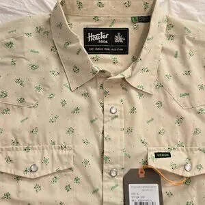 This is a new with tags, never worn H Bar B Snapshirt in XL. This is the sought after "Austin FC" pattern from 2021. It has a cream background the Austin FC slogan with the green agave and white pearl snaps. These are increasingly harder to find and rarer even to find never worn NWT. So grab this one before its gone and rep your team. Listos Verde!