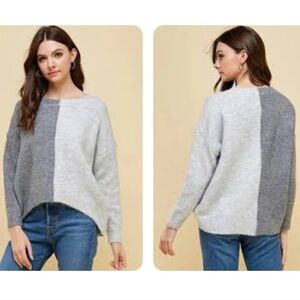 The Karina Color-block sweater by Pinch is the perfect basic sweater in a gray color-block. This is a great sweater to dress up or down!