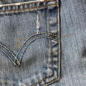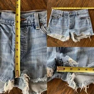 Great pair of vintage Y2K Levi’s 501 cut off shorts!! 100% cotton, mid rise, overall excellent condition…two small marks on the back pocket…shown in last photo.