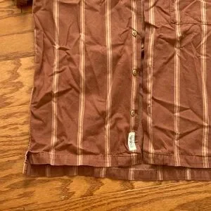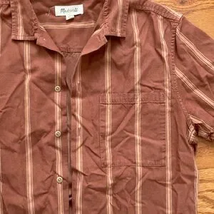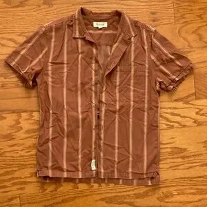 Madewell Men’s short sleeve burnt orange button up with vertical stripes. Good used condition.