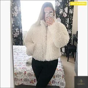 Oversized Teddy Boucle Faux Fur Jacket Zip Up Chic Winter Snug Coat