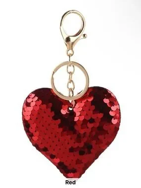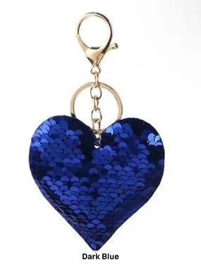 Sequin Heart Keychain or Bag Charm - Multiple Colors